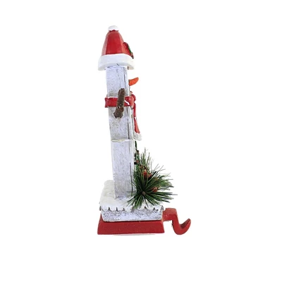 Christmas Snowman Plank Stocking Holder Polyresin Slats Wood-Look Planks Measures Approximately 7.5 In H X 3.5 In W X 2.75 In D (HxWxD). Includes One Stocking Holder.