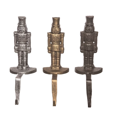 - Set of 3 durable cast iron nutcracker stocking holders adds a festive touch to your holiday decor.