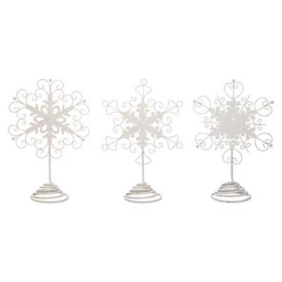 - Set of 3 elegant metal snowflake tree toppers perfect for enhancing your Christmas decor.